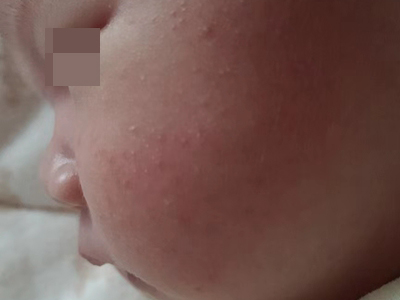 干燥型婴儿湿疹脸颊上有小丘疹图
