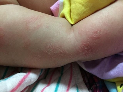 干燥型婴儿湿疹也会出现在胳膊上,皮损表现为形状不规则的红色斑片,皮损处干燥,有很多白色鳞屑附着,还有的地方起皮、脱屑,建议在医师指导下应用滋润皮肤的制剂软化皮屑,并将其去除。