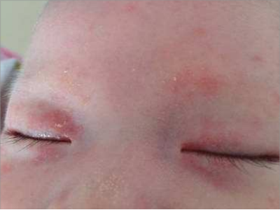 干燥型婴儿湿疹眼睑有红斑皮屑图