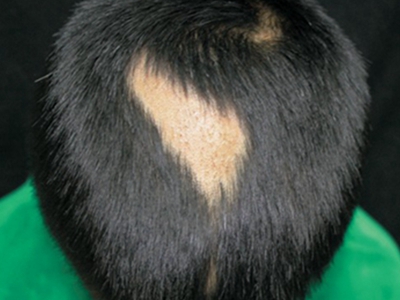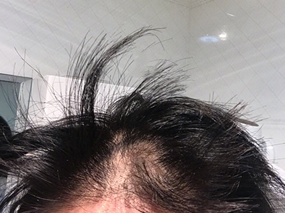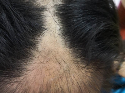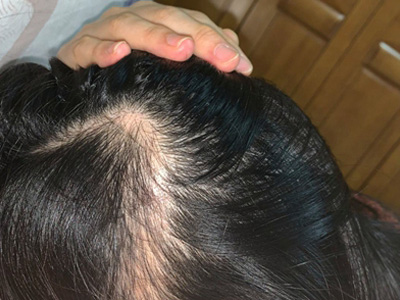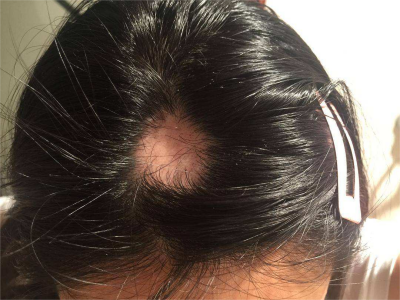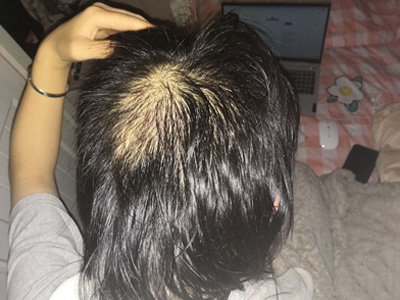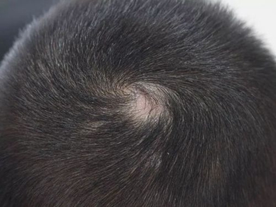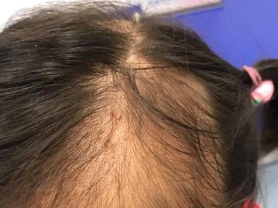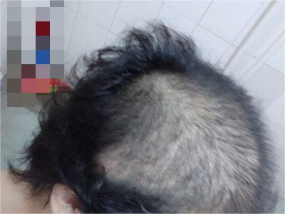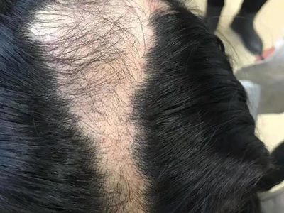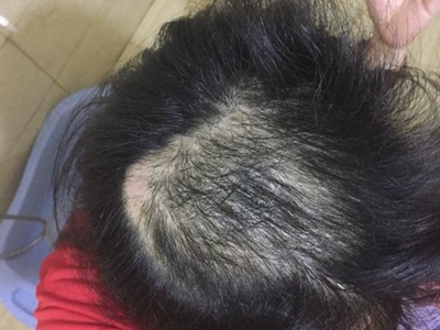 拔毛癖是不自主地将头顶头发拔除的一种怪异行为,患者头顶上有一个类似长卵圆形的脱发区,露出白色头皮,同时局部留有少数长短不一且杂乱的头发,严重影响美观。