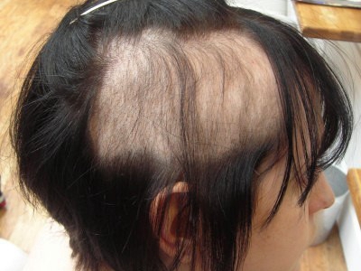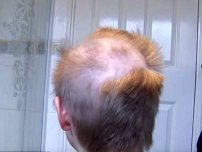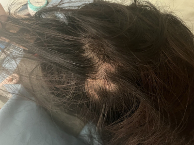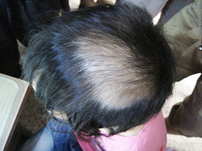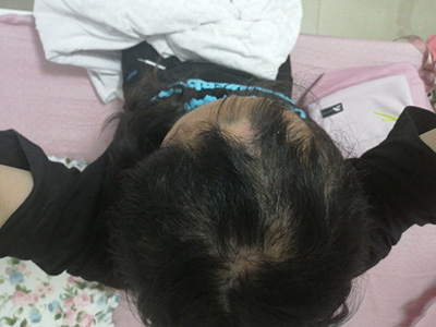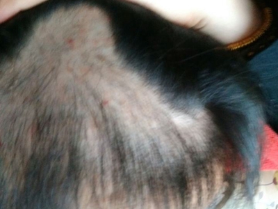 拔毛癖头上有一片头发被拔没了露出头皮图