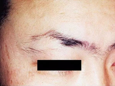 拔毛癖有少数患者喜欢拔眉毛,表现为眉毛缺失,拔毛区域眉毛稀少,皮肤无明显变化,但严重影响面部美观,需及时进行心理疏导,以防病情加重。