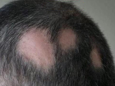 拔毛癖多见于前额部头发稀少,露出白色的头皮,受累区域形状不规则,边界不清晰,有时可清晰的看到张开或者被破坏的毛囊,患者无其他不适。