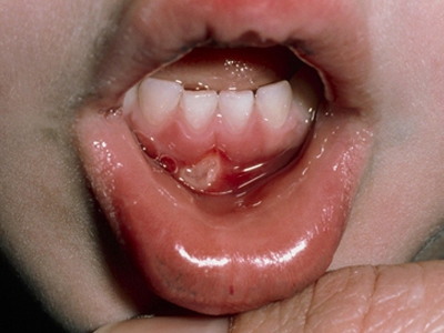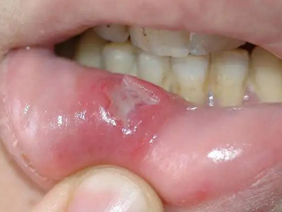 重型阿弗他溃疡下嘴唇内长大大小小的溃疡图