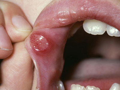 重型阿弗他溃疡上唇内有一个类圆形溃疡图
