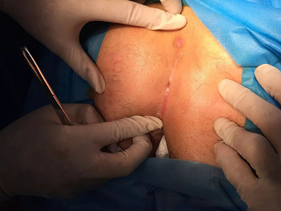 骶尾部藏毛窦病损表现为孤立的、绿豆大小的脓肿,表面破溃后,血液可以从中流出,疼痛明显,常位于骶尾部中央,可通过手术切除的方式进行治疗。