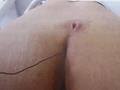 骶尾部藏毛窦屁股缝有个红色小孔图