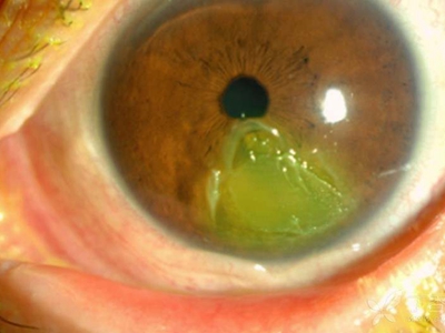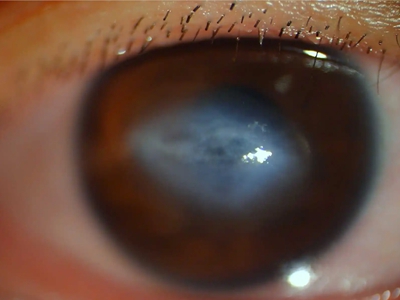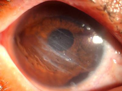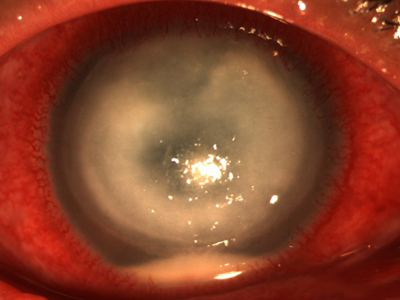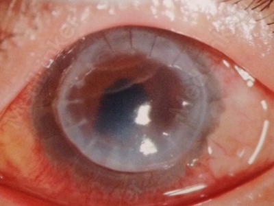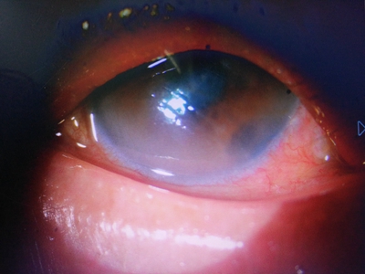 角膜挫伤角膜中间变成灰白色水肿浑浊图