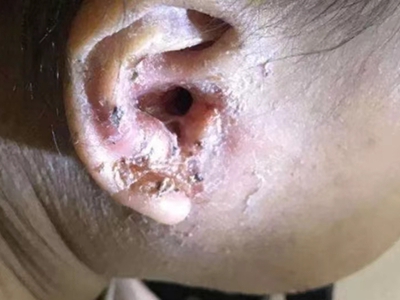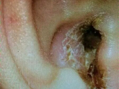 外耳道炎外耳道皮肤结黄白色痂皮图