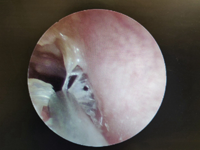 外耳道炎检查时发现外耳道内有多个白色半透明的肉赘,耳道潮湿,侧壁上还有又细又薄的白色鳞屑,患者表现为持续性疼痛,且逐渐加剧。