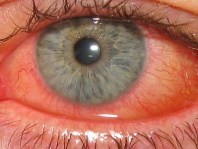 特应性角结膜炎表现为眼球表层有明显的血丝,轻微水肿,上眼皮内红肿充血,有些许凸起的连在一起的软疙瘩,眼睑一圈发红,出现眼睛痛、怕光等症状。