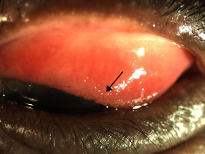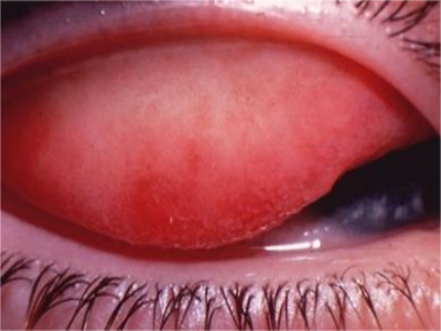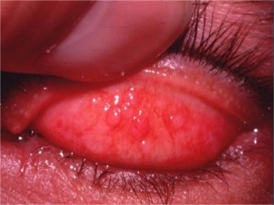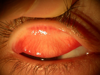 特应性角结膜炎眼睛里红血丝和疙瘩图