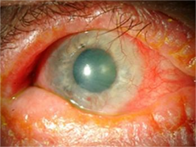 特应性角结膜炎患者表现为眼球整体混浊,结膜出现明显红血丝,并出现黄色脓性分泌物,同时会伴随眼睑部皮肤萎缩、褶皱变形等异常。