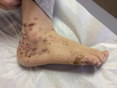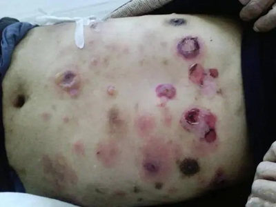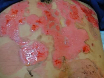 3、一般治疗:副肿瘤性天疱疮的患者治疗过程中拒食,加上皮损消耗,一般都伴有低蛋白血症,全身抵抗力差,易感染,而呼吸衰竭被认为是普遍的终点事件,应积极加强吸氧、抗感染等治疗,预防与减少阻塞性细支气管炎的发生,常见死亡原因多为脓毒败血症、胃肠道出血、呼吸衰竭等。