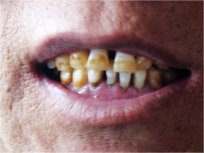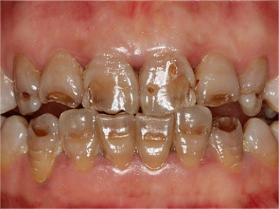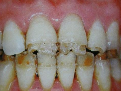 氟骨症牙齿出现黄褐色斑和裂纹图