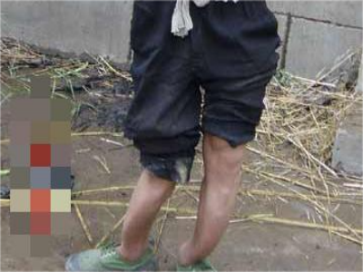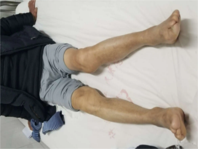 氟骨症双侧小腿和膝盖严重向外弯曲变形图