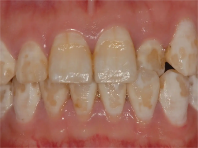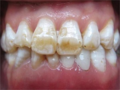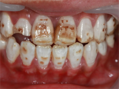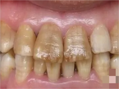 氟骨症牙齿变色出现褐色斑和凹坑图