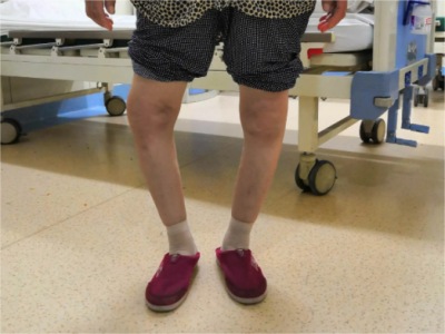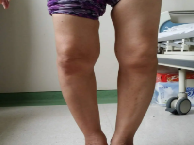 氟骨症累及患者双侧小腿和膝盖时,表现为小腿和膝盖严重向外弯曲变形,呈“O”型,同时因骨关节硬化、增生,使膝盖膨大、僵硬,伴随麻木、疼痛等异常症状。