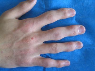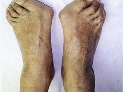 1、关节表现:典型者少见,其特点为多发性、对称性、游走性,多侵犯四肢大关节、不遗留关节畸形。常对称地累及膝、踝、肩、腕、肘、髋等大关节,局部有红、肿、热、痛的炎症表现,但不化脓。部分患者可几个关节同时发病,亦可波及手、足小关节或脊柱关节等,成人比较显著。不典型者仅有关节酸痛,而无其他炎症表现。急性炎症消退后,关节功能完全康复,不遗留关节强直或其他畸形。常有复发;