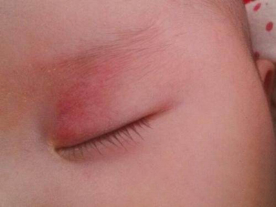 眼睑毛细血管瘤患儿眼周有红色不规则隆起斑片,质地柔软,按压可以压缩,哭闹时会增大,需积极观察,如面积继续扩大,可在医师指导下采取药物及硬化剂注射治疗等。