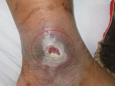 职业性皮肤溃疡脚踝皮肤圆形溃烂面图