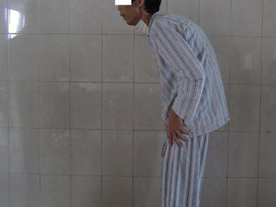 强直性脊柱炎后凸畸形病情较轻者,脊柱畸形外观并不严重,表现为生理曲线消失,疲劳性站位,弯腰、屈膝程度较小,视线不能平视。