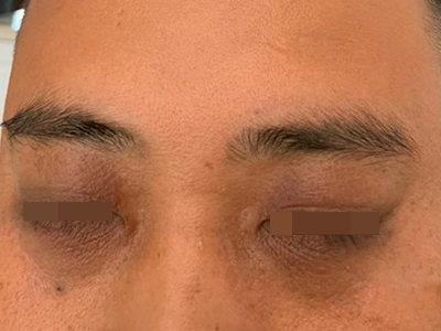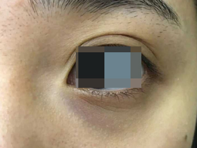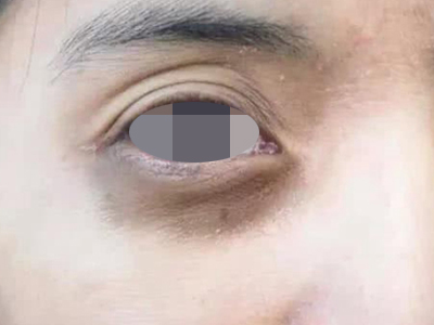 眶周色素沉着症可表现为灰褐色或灰黑色的色素沉着斑。初期累及下睑部,继而可蔓延至上眼睑及其周围,而形成圆圈状色素沉着或血管性的皮肤发青。