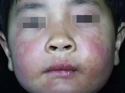 芒果皮炎在进食芒果后出现,孩子的嘴巴周围皮肤出现透明水疱,粟粒大小,散在分布。此外,脸部皮肤还有明显水肿、潮红,可伴有瘙痒等症状。