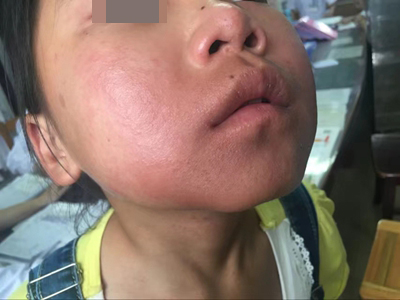 芒果皮炎脸部大面积的潮红肿胀图