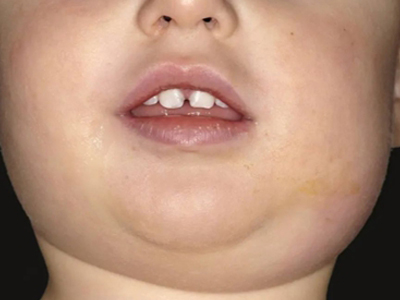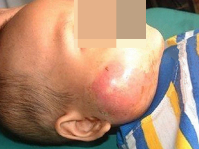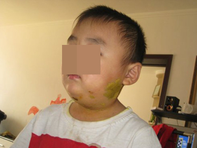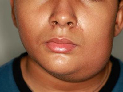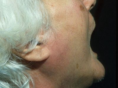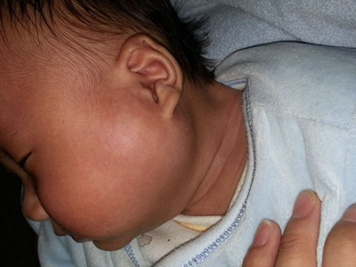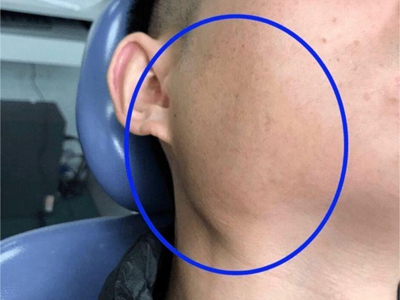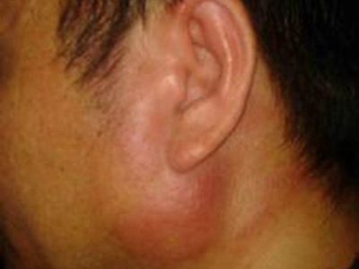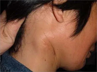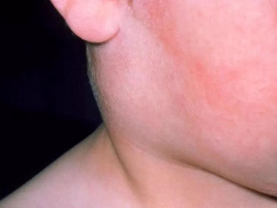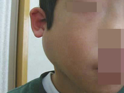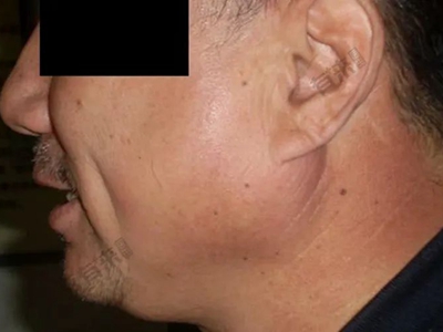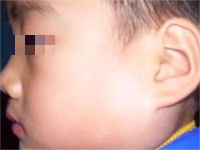 流行性腮腺炎患者左侧面部出现巨大的肿块,边界不清,只能大致看到肿块的轮廓,按压有疼痛感,一般在数日后对侧面部也出现肿大。