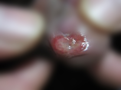 硬下疳好发于外生殖器,典型的硬下疳初起为小红斑,迅速发展为无痛性炎性丘疹,数天内丘疹扩大形成硬结,表面发生坏死形成单个直径为1-2cm圆形或椭圆形无痛性溃疡,境界清楚,触之具有软骨样硬度,表面有浆液性分泌物,传染性极强。