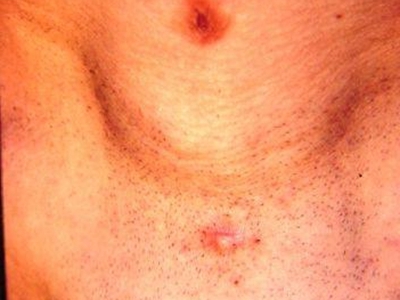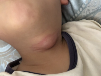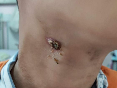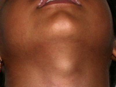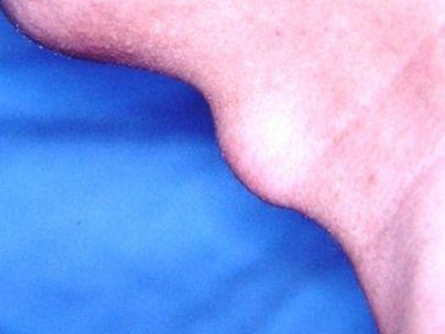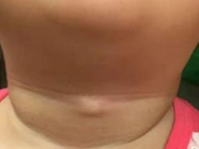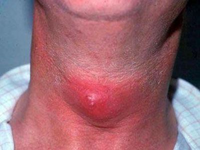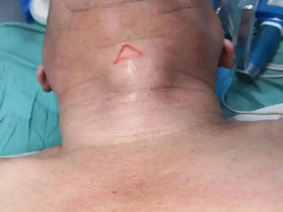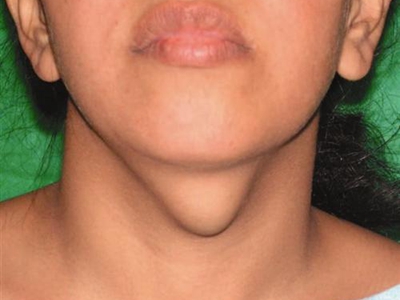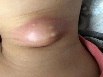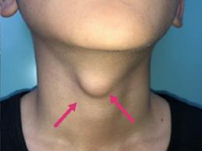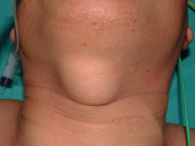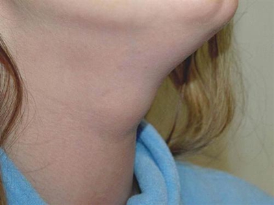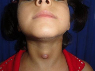 甲状舌管囊肿患者的颈部前面起了一个圆疙瘩,其表面呈肤色,近似圆形,凸起于皮面,边界清晰,无粘连,可随吞咽上下活动,多数患者无压痛。