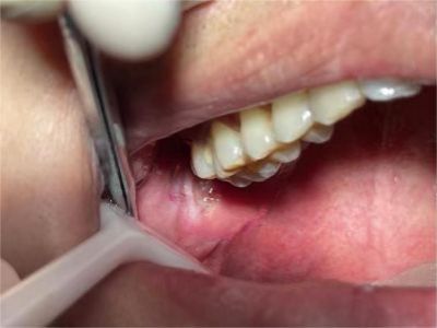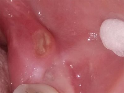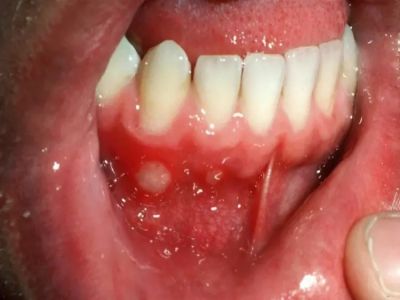 创伤性溃疡上唇和牙龈交界处有一块烂掉了图