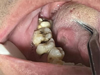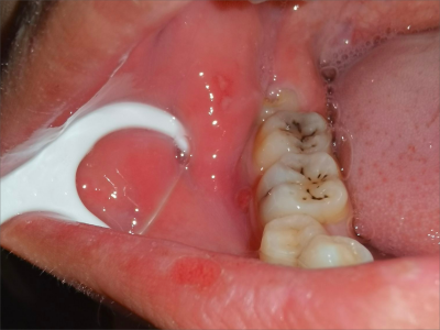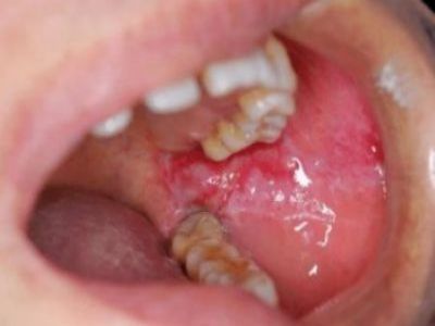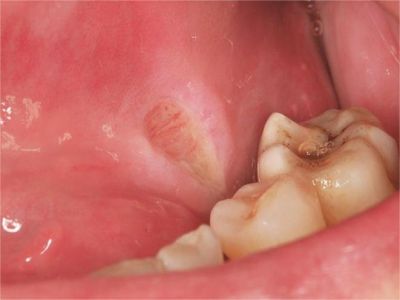 创伤性溃疡磨牙旁边的肉被磨烂了图