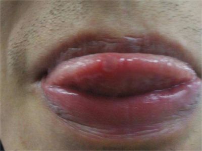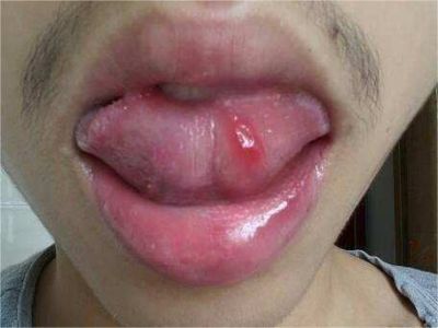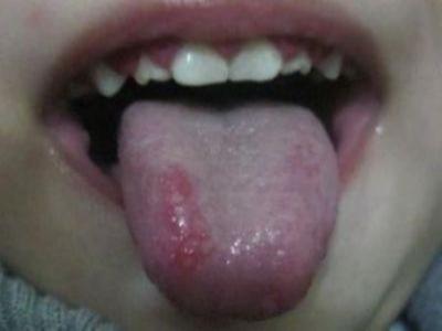 创伤性溃疡舌头侧面有一处鼓起溃疡图