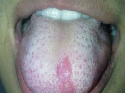 创伤性溃疡患者,舌尖皮损表现为有一个圆形的小溃疡,黄豆大小,边界清楚,中间黏膜发白,如果没有继发感染,3-5天愈合,愈后不会留有瘢痕。