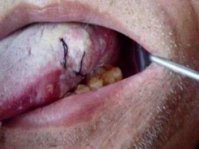 创伤性溃疡患者的口腔里烂了一大块,而且旁边还出现白色的糜烂,单侧发生,糜烂的区域和附近黏膜组织界限清晰,需要病理活检明确诊断。