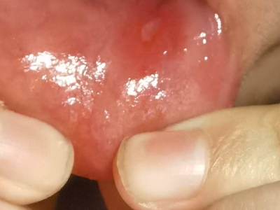 创伤性溃疡下嘴唇内侧出现一个溃疡图