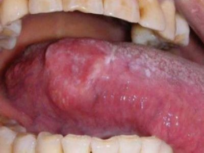 创伤性溃疡舌侧一块浅黄色溃疡图