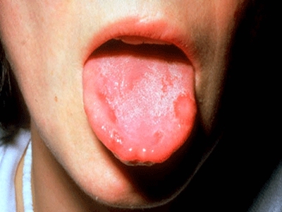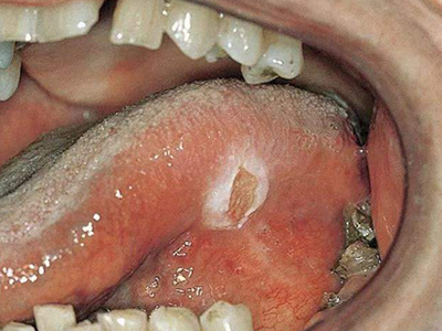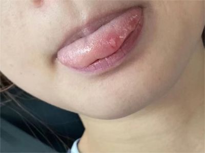 创伤性溃疡口腔黏膜破损后可形成溃疡或糜烂面,表现为患者舌头侧面有一块糜烂的灰白色溃疡,边界不清,溃疡表面有黄色的脓性或黏液性分泌物,舌头不小心咬伤后可伴疼痛。