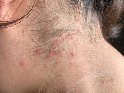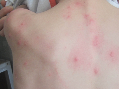 成人痒疹患者后背有数量较多的小红疙瘩样皮疹,红疙瘩表面光滑有反光,分布并不规则,而且红疙瘩可以聚集并互相融合。但患者皮损部位会有明显的瘙痒感,搔抓后皮肤易破损并出现结痂。