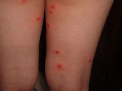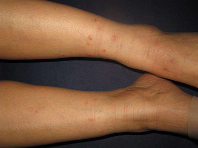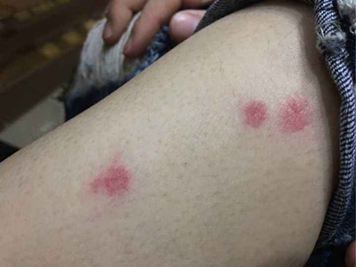成人痒疹患者小腿上有几个形状不规则的红斑,会稍突出于皮肤表面,红斑表面并不平整,与正常皮肤之间的界限不清晰。如果病情加重,红斑会增大或增多。