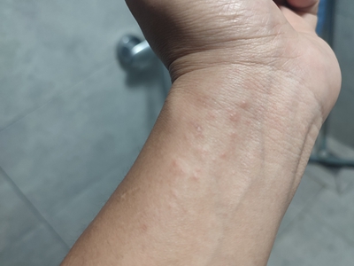 成人痒疹出现在手腕内侧,皮损为芝麻到米粒大小的坚实小疙瘩,颜色为肤色或轻微发红,触摸皮肤不光滑,有强烈的瘙痒感,搔抓后皮损会增大,建议遵医嘱使用炉甘石洗剂等药物缓解。