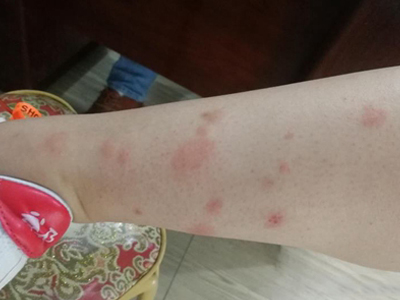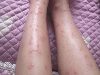 成人痒疹出现在患者的小腿上时,会长圆形的红斑,面积相对较大,每个都有乒乓球大小。患者还会有较为明显的瘙痒症状,搔抓可暂时缓解。