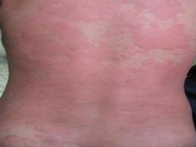冷接触性荨麻疹严重时,整个背部布满大面积红斑,并隆起于皮肤表面,中间偶有健康皮肤夹杂,分界清晰,有强烈痒感,搔抓无法缓解瘙痒,有可能越抓越痒。