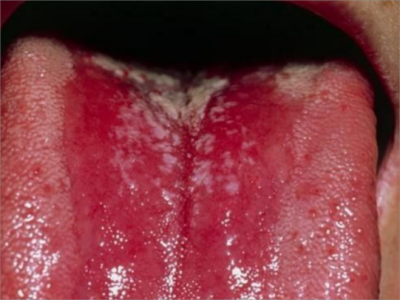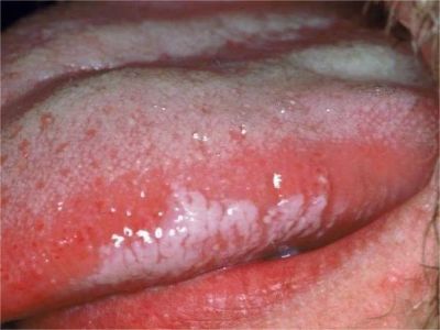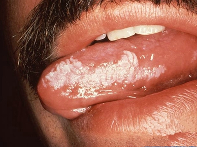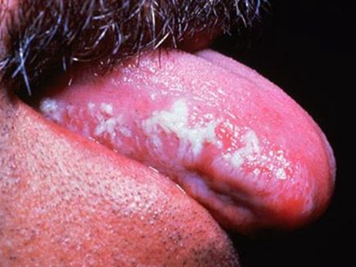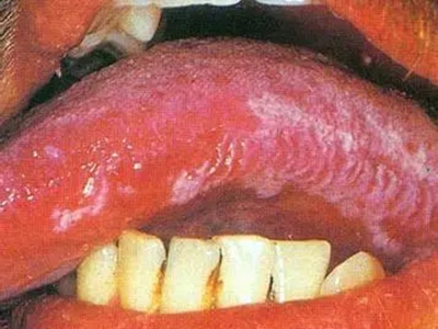 口腔毛状黏膜白斑舌侧面有大面积白斑图