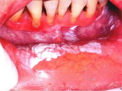 口腔毛状黏膜白斑下嘴唇内侧白斑图