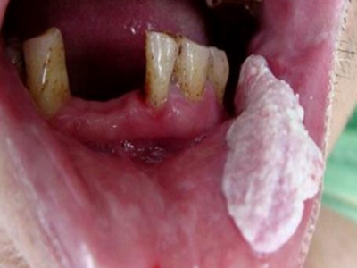 口腔毛状黏膜白斑多见于艾滋病患者,病损累及唇内侧,呈白色或乳白色,一大片,稍突起于黏膜,表面粗糙,呈毛状,应及时遵医嘱进行治疗。