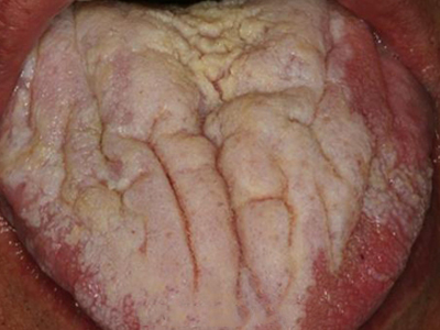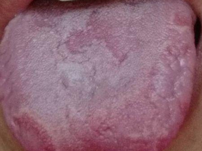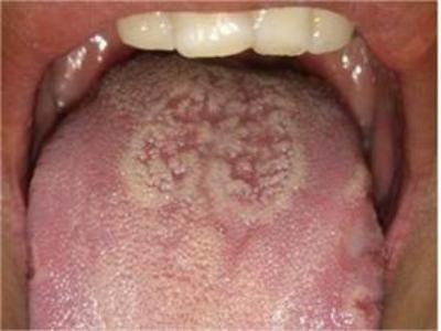 口腔毛状黏膜白斑舌面布满褶皱及白斑图