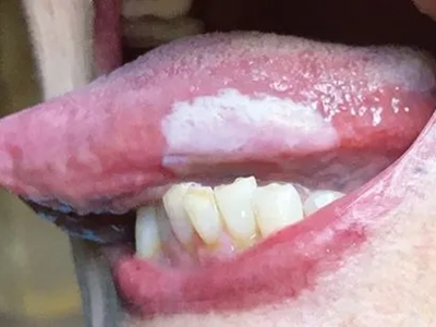 口腔毛状黏膜白斑舌头一侧大片白斑图